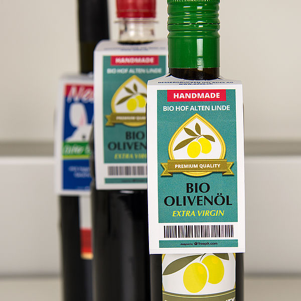 Mit unserem Colorprint 350 drucken Sie Ihre eigenen gesetzeskonformen Lebensmittel-Etiketten nach Bedarf. Diverse Etikettenformate möglich.