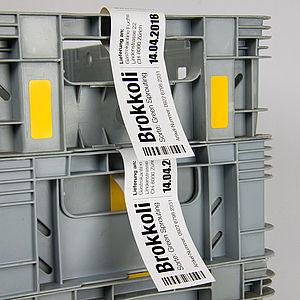 Das verwendete Etikettenmaterial SmartLabel® STTE-R419 ist Schmutz abweisend und ermöglicht ein sehr scharfes Druckbild. Das ist gerade bei Etiketten mit vielen Inhaltsstoffen und kleiner Schrift sehr vorteilhaft. Die Etiketten dürfen in direktem Kontakt mit Lebensmitteln stehen, die vor dem Verzehr erfahrungsgemäss gewaschen und/oder geschält werden. Dank den spezifischen Eigenschaften werden die Etiketten für Frischwaren, wie Fleisch, Gemüse, Milchprodukte sowie generell für alle gekühlten und tiefgefrorenen Produkte eingesetzt. Diese Etikettiersystem ist auch für die Beschriftung von Blumen und anderen Frischwaren geeignet, welche in kalten und leicht feuchten Umgebungen bis -10°C verarbeitet werden.