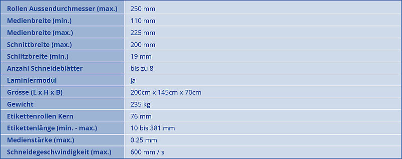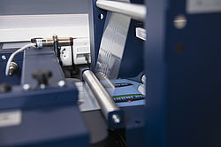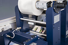 Anschliessend wird jedes einzelne Etikett entgittert und so von überschüssigem Material befreit. Sowohl die fertig produzierten Etiketten als auch die Materialüberreste werden getrennt und automatisch wieder aufgerollt. Je nach Bedarf können Sie Ihre produzierten Etiketten auf bis zu 8 verschiedene Rollen aufwickeln.