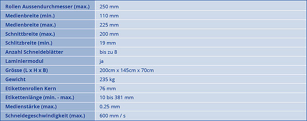 Sobald Sie Ihre individuellen Etiketten gedruckt haben, können Sie diese in den Finisher spannen und in einem einzigen Durchgang laminieren, schneiden und entgittern sowie für eine weitere Verarbeitung aufrollen. Sie können Medien mit einer Breite von 110 bis 225mm verarbeiten.