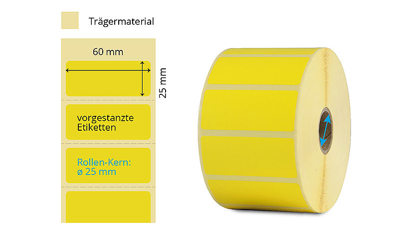 Für Etikettenrollen mit einem Kerndurchmesser von ø76 mm benötigen Sie einen externen Rollenhalter. Rufen Sie uns an, wir helfen Ihnen gerne weiter.