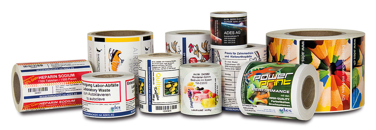 Das grösste und vielseitigste Angebot an Etiketten für Epson-Farbetikettendrucker finden Sie bei ADES AG. Alle Inkjet-Etiketten zu den Druckern wie Lebensmitteletiketten, Flaschenetiketten, Verpackungs-Etiketten, Papieretiketten, Etiketten aus Kunststoff, etc. werden bei uns ab Lager geliefert, ganz nach dem Motto: Heute bestellt, morgen bei Ihnen.