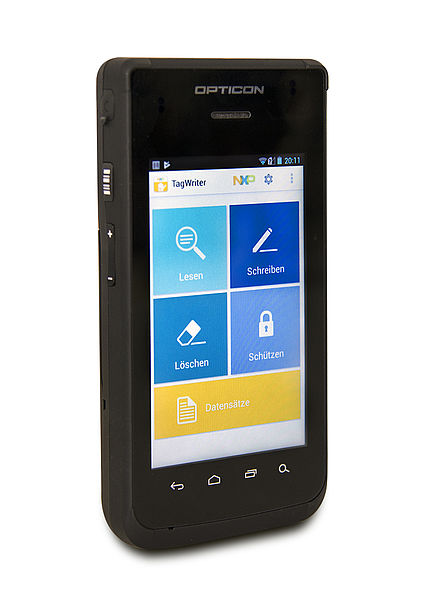 Für Android-Systeme gibt es viele gratis Apps auf dem Mark, welche die meisten recht gute Eigenschaften haben, um solche HF-Etiketten und NFC-Etiketten zu lesen und zu beschreiben. Wir empfehlen für professionelle Anwendungen den preiswerten und sehr robusten Opticon H-27 PDA mit 4.3 Zoll Farbdisplay. Dieser hat die entsprechenden Antennen bereits ab Werk eingebaut und ist somit RFID-ready.