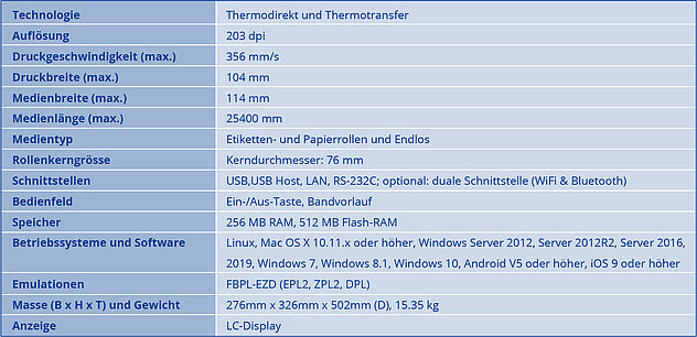 203 dpi Thermotransfer Drucker mit USB, Seriell und LAN Schnittstelle