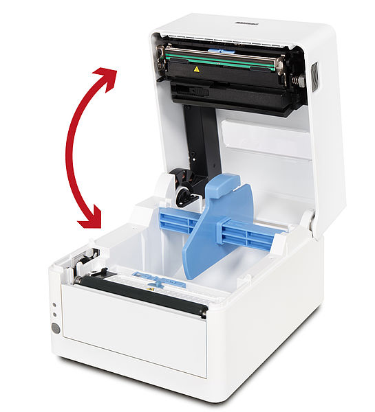 Mit der Hi-Open-Technik lässt sich das Gehäuse problemlos vertikal öffnen und schliessen, ohne die Stellfläche zu vergrössern. Das Druckmaterial kann leicht ausgewechselt werden. Ideal für beengte Umgebungen und ungeübte Nutzer.