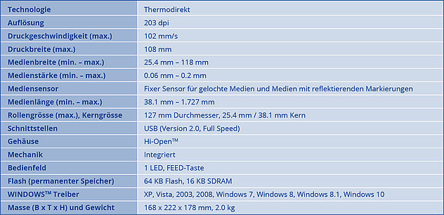 Der Drucker verfügt über eine Full-Speed USB 2.0 Schnittstelle und ist dadurch sofort einsatzbereit. Dank dem eingebauten Stromanschluss benötigt er nur einen geringen Platzbedarf und ist durch das erhöhte Eigengewicht sehr stabil.