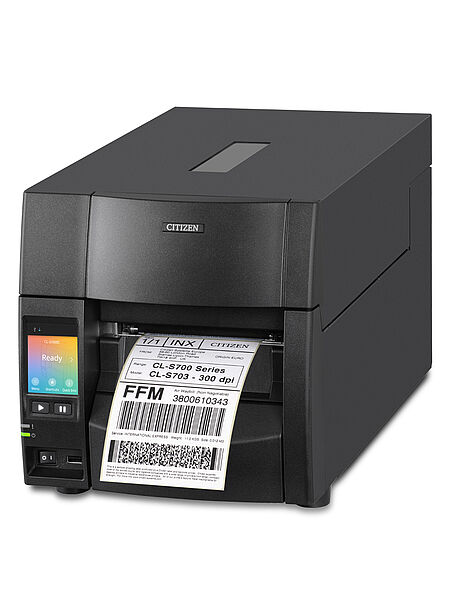 Der Citizen CL-S703III ist wie der CL-S700III sowohl für kleine als auch grosse Etikettenrollen geeignet. Die maximale Druckbreite bei diesem Modell ist ebenfalls 118 mm. Jedoch hat er eine höhere Auflösung. Mit einer 300 dpi Druckauflösung eignet er sich perfekt für kleinere Etiketten mit 2D-Matrixbarcodes wie Datamatrix, DataBar, QR-Code und PDF417 oder zum Druck von Logos und kleinen Schriften.