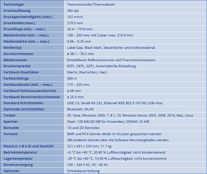 Ideal für das Bedrucken von grossen Etiketten mit einer Breite von 108 bis 255 mm. (SSCC od. A4 Format) Alle Etiketten mit Label-Gap, Black Mark, Steuerlöcher und Endlosmaterial.