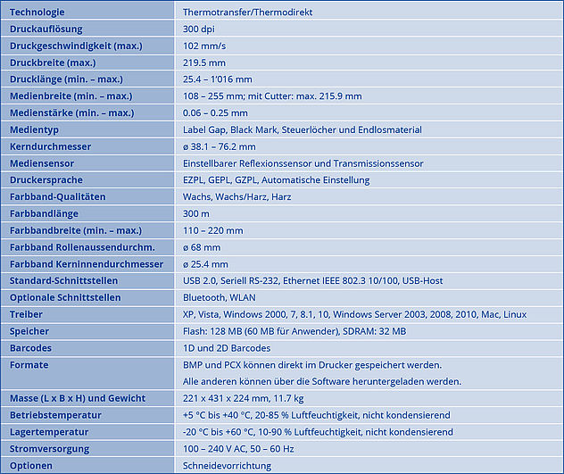 300 dpi TT-Drucker mit interaktivem Farbdisplay und ext. Rollenhalter