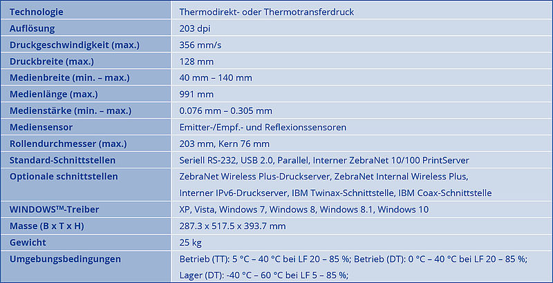 Der Drucker Zebra 140Xi4 hat eine Druckauflösung von 203 dpi und eine maximale Druckbreite von 128 mm. Bei Verwendung von Endlos-Papier steht Ihnen optional eine integrierte Etiketten-Schneidevorrichtung zur Verfügung, um Ihre Druckmedien auf Wunschgrösse zuzuschneiden.