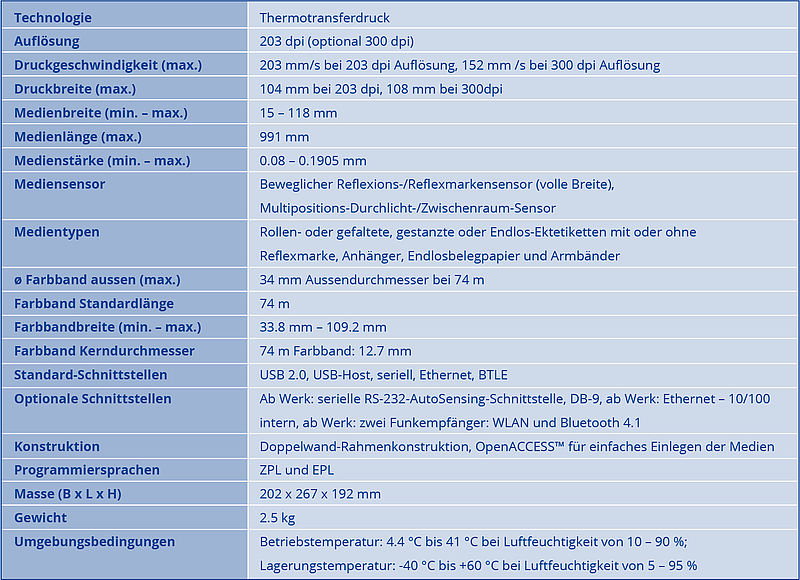 Zebra ZD631-TT-USB-LAN-WLAN-BT-RS232: 300 dpi, Thermotransfer, USB, LAN, WLAN, Seriell, Bluetooth Schnittstelle, Art.-Nr. 030024, Fr. 915.-