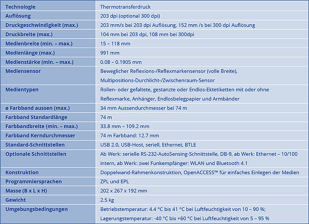 Thermotransfer-Drucker mit Farbdisplay, USB, LAN, RS232 und Bluetooth