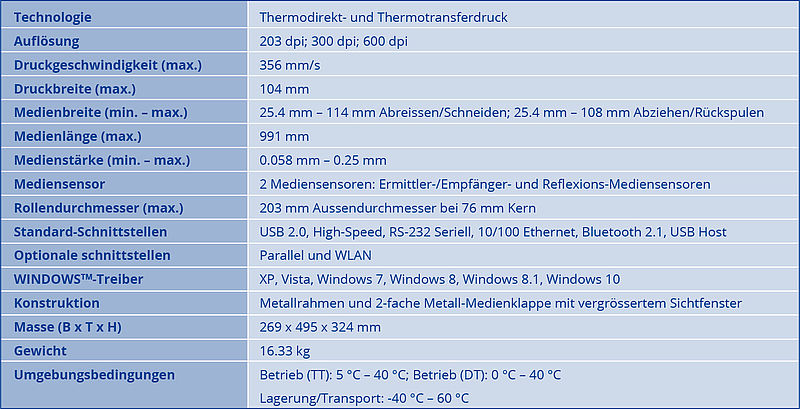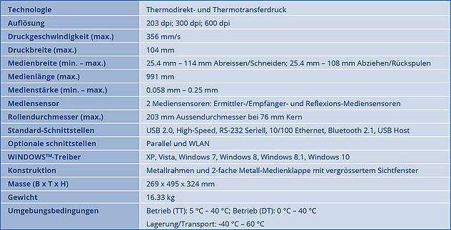 Die Anbindung des Zebra ZT411-RFID an neue oder bereits vorhandene Systeme gestaltet sich durch die grosse Vielzahl an Schnittstellen besonders einfach (USB 2.0, RS232, 10/100 Ethernet, Bluetooth 2.1, und USB-Host). Zudem passt sich dieses Modell problemlos anderen Druckern an, da gängige Programmiersprachen wie ZPL und EPL erkannt werden.