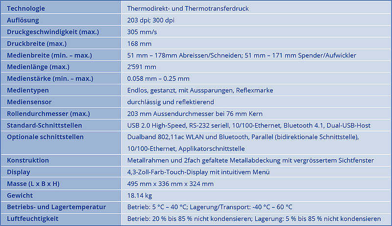 Der Zebra ZT421 kann sowohl Thermodirekt als auch Thermotransfer Etiketten bedrucken. Bedruckbar sind Etiketten mit einer Breite von 51 mm bis hin zu 178 mm mit einer max. Länge von 991 mm.