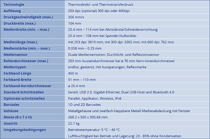 Thermotransfer-Drucker 203 dpi mit Ethernet, USB, USB Host, Bluetooth 4.0 und Seriell Schnittstelle