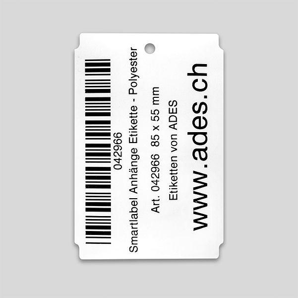 | 85 x 55 mm | Weiss | Ohne | 2'000 | Polyester 150 µm ST | SDR | ø 76 mm | mit Befestigungsloch | 042966 | ||