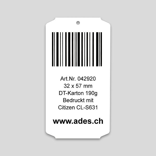 MEDIENWAHL 03: TT Anhängeschilder aus Thermotransfer Halbkarton mit Stanzloch