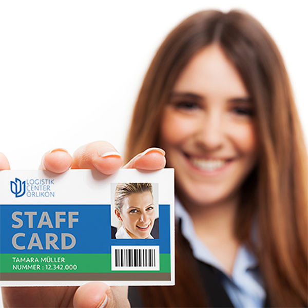 Die Kunststoff-Karten haben ein Format von 86 x 54 mm und können ganz individuell mit Foto, Text, Barcode etc. bedruckt werden.