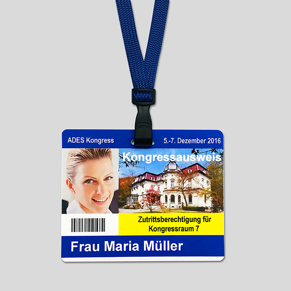 Sehr preiswerte, vollfarbige Besucherausweise mit und ohne Befestigungsschlitz. Die Ausweise können in einem Durchgang beidseitig mit Foto, Text und Strichcode bedruckt werden.
