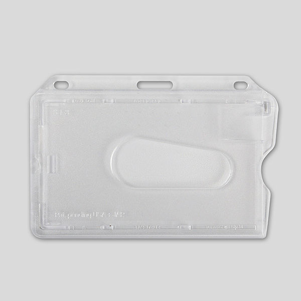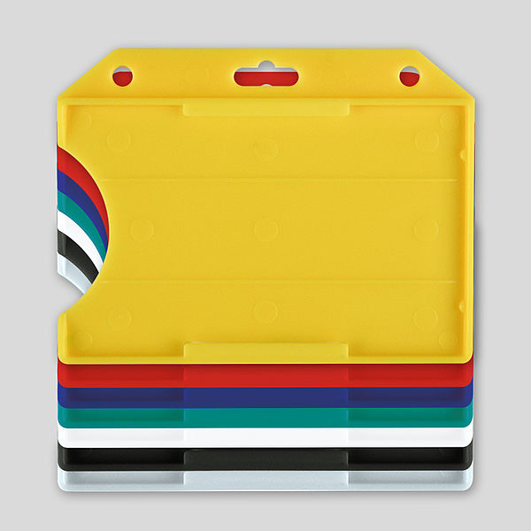 Dieser Halter aus Polypropylen schützt Ihre Plastikkarten vollständig und verfügt über Löcher für eine horizontale oder vertikale Aufhängung. Der Halter bietet Platz für bis zu 2 Ausweise. Dank Daumenkerbe auf der Rückseite lassen sich die Karten leicht seitlich einschieben und entnehmen. Die Langlöcher ermöglichen das einfache Anbringen an einem Schlüsselband, Ausweisjojo oder Riemenclip.