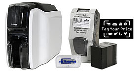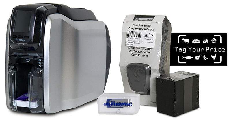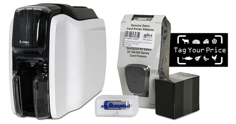 Komplettes anschlussfertiges Preisschilder Drucker-Set für 2-seitigen Druck, mit Kartendrucker, Tag-Your-Price-Software, USB-Anschlusskabel, Farbband-Kassette, 100 Plastikkarten etc.