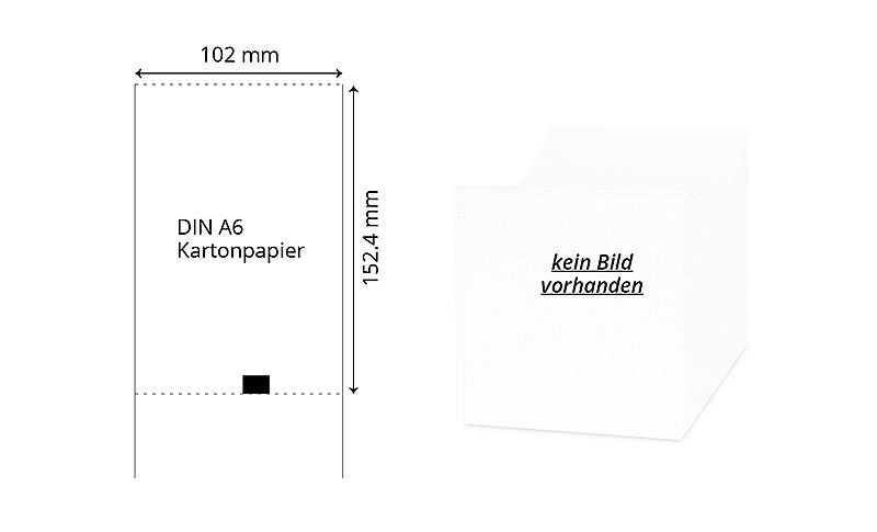 | 102 x 152 mm | Weiss | Ohne | 1'000 / Box | Kartonpapier | – | Karte DIN A6, z-gefaltet mit Perforation | BESUCH-A6 |