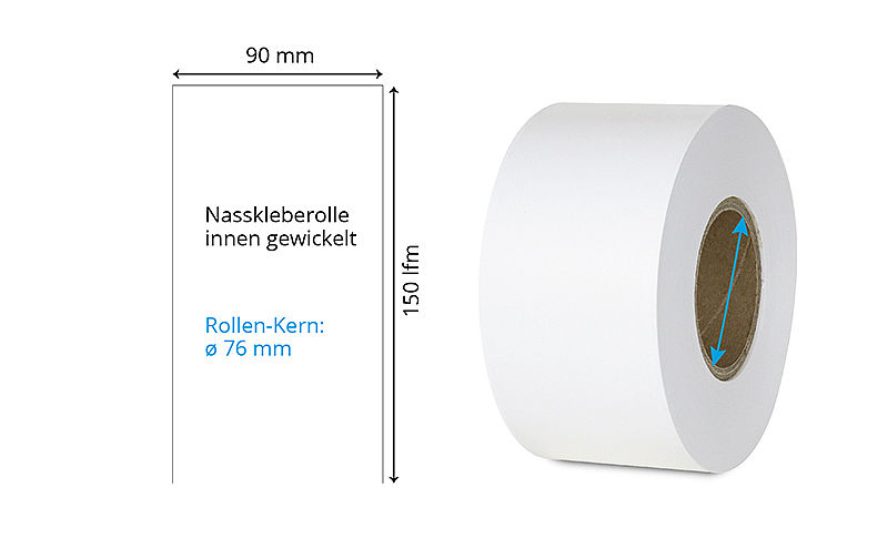 | 90 mm x 150 lfm | Weiss matt | Ablösbar | Endlos-Rollen | Inkjet WIJL 12 | ø 76 mm | Nasskleberolle innen gewickelt | 040978 |