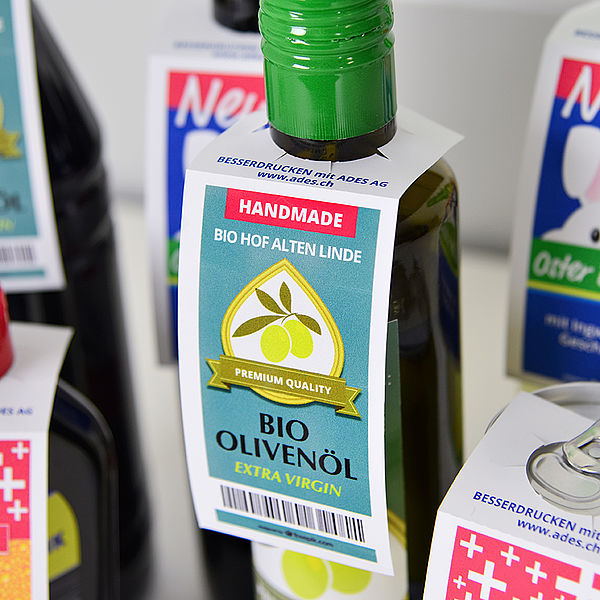 Gerne produzieren wir auch Ihre ganz persönlichen Flaschen- und Lebensmittel-Etiketten nach Mass. Cirka 2 Wochen Lieferfrist für Spezialanfertigungen. Preislich attraktiv ab ca. 50 Rollen pro Produktionseinheit. Rufen Sie uns an, wir beraten Sie gerne.