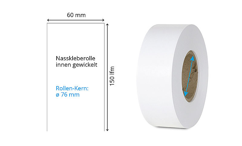 | 60 mm x 150 lfm | Weiss matt | Ablösbar | Endlos-Rollen | Inkjet WIJL 12 | ø 76 mm | Nasskleberolle innen gewickelt | 040977 | ||