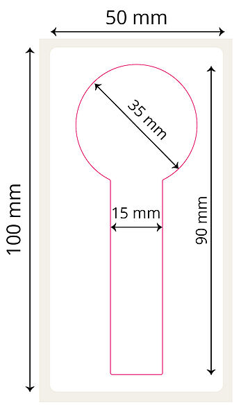 | 100 x 50 mm | Weiss glanz | Permanent | 1'250 | Inkjet Papier SIJ-R326 | ø 76 mm | Deckeletikett mit guarantee lock, ohne Perfo, Sonderform 35x90mm | 041288 |