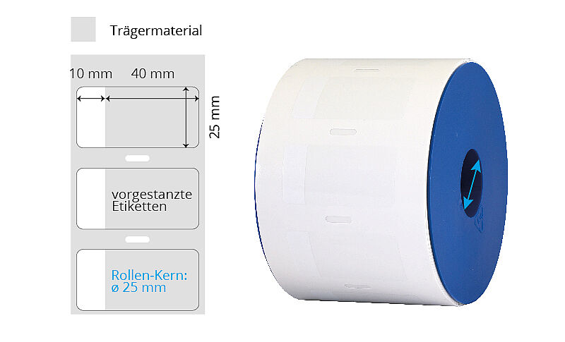 | 50 x 25 mm | Weiss | Permanent | 1'000 | LM Vinyl | ø 25 mm | Kabeldicke max. ø12 mm o. Perfo | 042084 | ||
