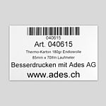 Diese Endlos-Rollen aus Thermotransfer Halbkarton werden mit dem Drucker bedruckt und gleichzeitig auf Wunschgrösse zugeschnitten. Sie kommen in unterschiedlichen Bereichen zur Anwendung. Z. B. für Terminkarten, Billette, Zutrittskarten, Produktkarten usw.