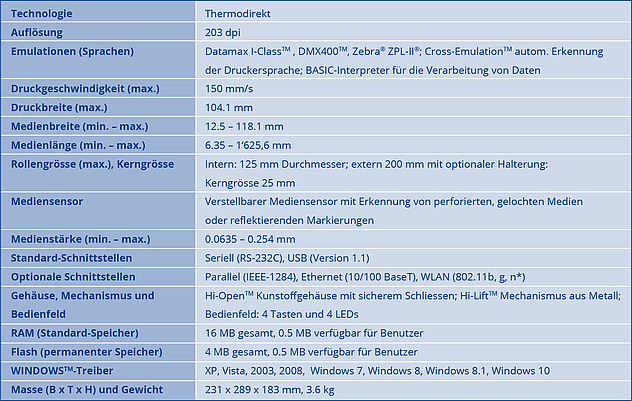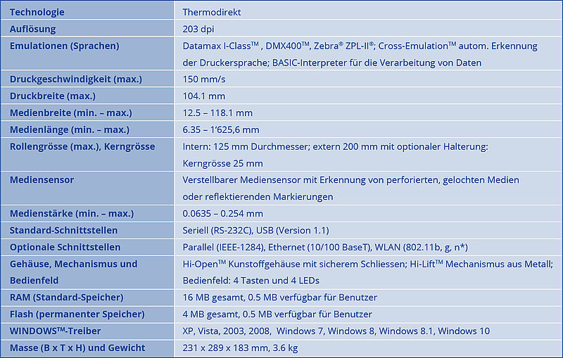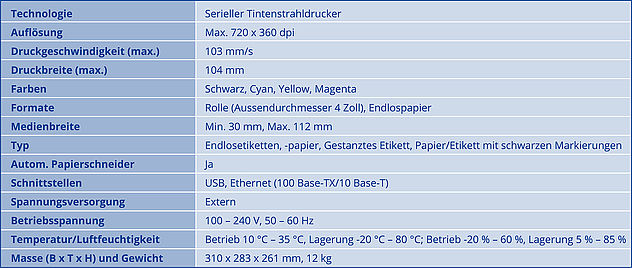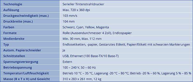 Die Schilder können aus Papier, Karton oder Kunststoff sein und eine Medienstärke von max. 0,254 mm Dicke aufweisen. Die Schilder werden in bester Qualität mit Text, Grafik und Strichcode individuell bedruckt. Auch farbig vorbedruckte Materialien wie zum Beispiel Tickets und Billette können nachträglich mit personalisierten Daten wie Zeit, Datum, Strichcode, Beschreibung etc. eingedruckt werden. Die kleinstmögliche Schildergrösse beträgt 12,5 x 25 mm die grösste ca. 118 x 1000 mm. Eine entsprechende Gestaltungssoftware ist im Set enthalten. Im Drucker eingebaut ist eine Schneidevorrichtung (Cutter) für das automatische Zuschneiden der Schilder ab Endlos-Rollen.