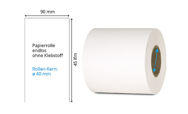 | 90 mm x 45 lfm | Weiss | Ohne | Endlos-Rolle | Inkjet Papier NIJB | ø 40 mm | 040916 | |||