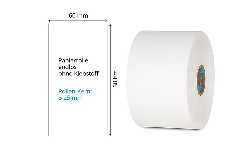 | 60 mm x 38 lfm | Weiss | Ohne | Endlos-Rolle | SMC-TT-R243 | GPR+ | ø 25 mm | 040640 | ||