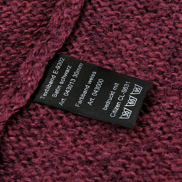 Das Polyester Satin Material ist in verschiedenen Breiten erhältlich, bei 60° waschbar und eignet sich bestens zur Auszeichnung diverser Produkte wie, z. B. Kleidung, Textilprodukte, Strickwaren, Grössen-Aufnäher, Aufnäher für Schuhe, Vorhänge etc. Was früher nur in schwarz/weiss gekennzeichnet werden konnte ist nun auch spielend farbig möglich. Farbe eröffenet Ihnen noch viele weitere Möglichkeiten Ihre Produkte professionell zu beschriften.