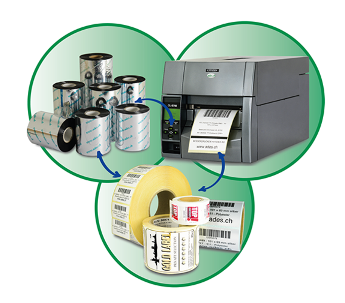 Damit Sie mit Ihrem Drucker die optimale Druckqualität erreichen, muss Ihr Etiketten-Material immer exakt mit dem Farbband-Material sowie den Drucker-Einstellungen übereinstimmen. So verlängern Sie auch die Lebensdauer Ihres Druckers und des Druckkopfs erheblich. Fragen Sie uns, wir zeigen Ihnen wie man das macht.