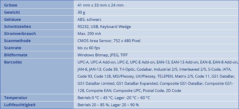 Anwendungsbereiche: für alle 1D- und 2D-Strichcodes und OCR-B Schrift