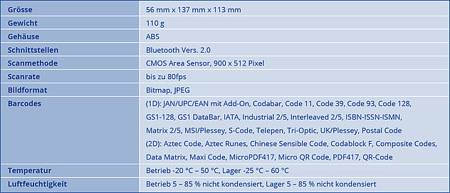 Anwendungsbereiche: für alle 1D- und 2D-Strichcodes und OCR-B Schrift