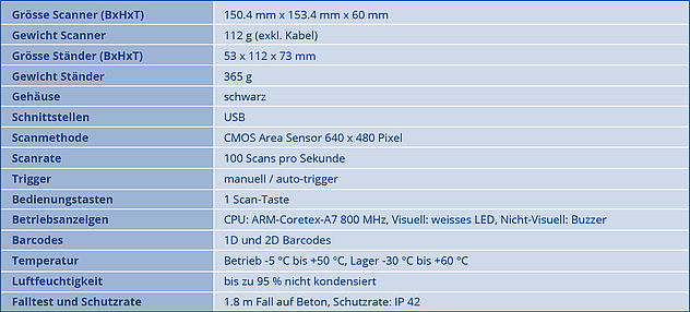 Der Opticon QR-1 Strichcode-Scanner liest alle 1D und 2D Barcodes, auch den Swiss QR-Code, der ab 30.06.20 auf allen Einzahlungsscheinen zu finden ist. Dabei spielt es keine Rolle, ob der Code ab Papier (Etiketten, Prospekte, Plakate etc.) oder ab Bildschirm oder sonstigen Oberflächen gelesen wird, eine hervorragende Leseleistung und Decodierung ist garantiert. Der Opticon QR-1 2D ist mit seinen 100 Scans pro Sekunde und grosser Schärfentiefe ein sehr schneller Handscanner und wird für eine benutzerfreundliche Bedienung zusätzlich mit einem praktischen Tischständer geliefert. Damit kann dieses Modell auch als Freihand-Scanner eingesetzt werden. Einfach Code darunter halten und schon wir er eingelesen ohne eine Taste drücken zu müssen. Mit seinen universellen Schnittstellen ist der Scanner überall anschliessbar und sofort betriebsbereit.